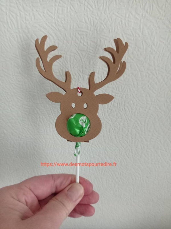 Quel petit gourmand... Ce petit renne (ou cerf) gardera précieusement le chocolat ou la sucette que vous lui confierez.