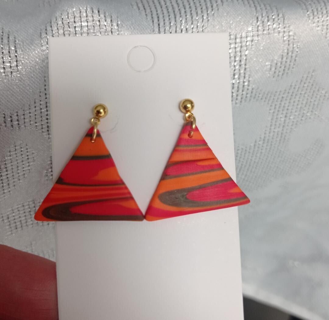 Ajoutez une touche d'originalité à votre collection de bijoux avec ces magnifiques boucles d'oreilles en pâte polymère, en forme de triangle. Alliant élégance et modernité, ces boucles d'oreilles ne manqueront pas de sublimer toutes vos tenues.