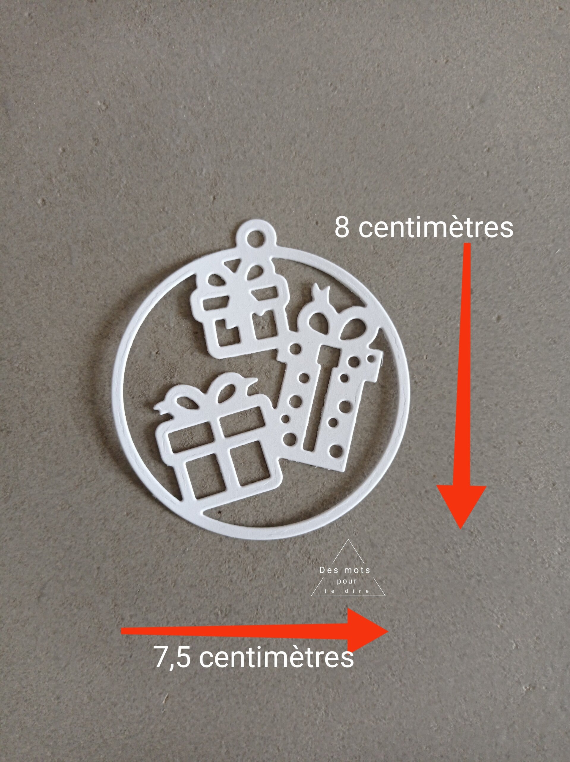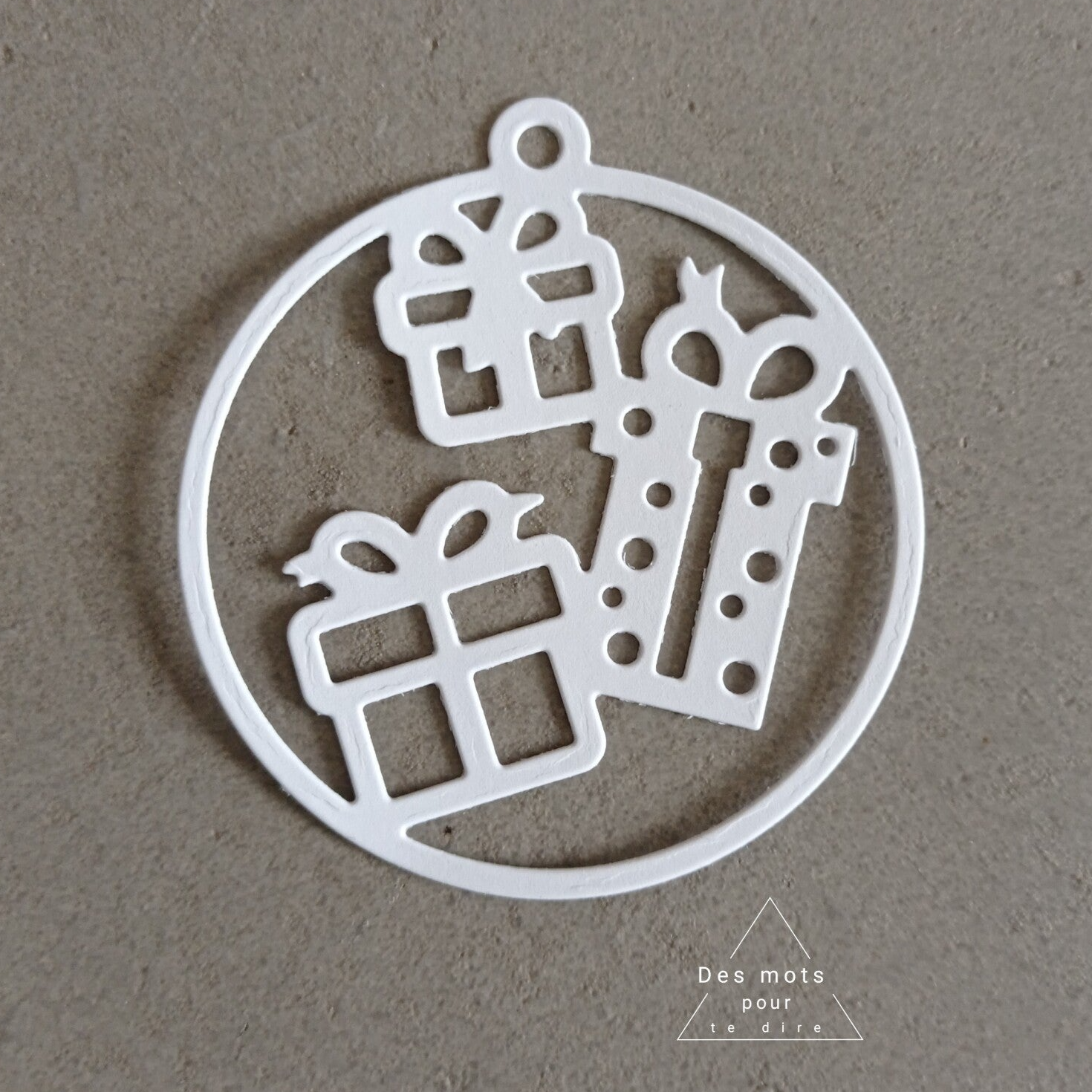 #découpe #bouledeNoël #paquetscadeaux #scrapbooking #carterie #papier #embellissement #desmotspourtedire #https://www.desmotspourtedire.fr