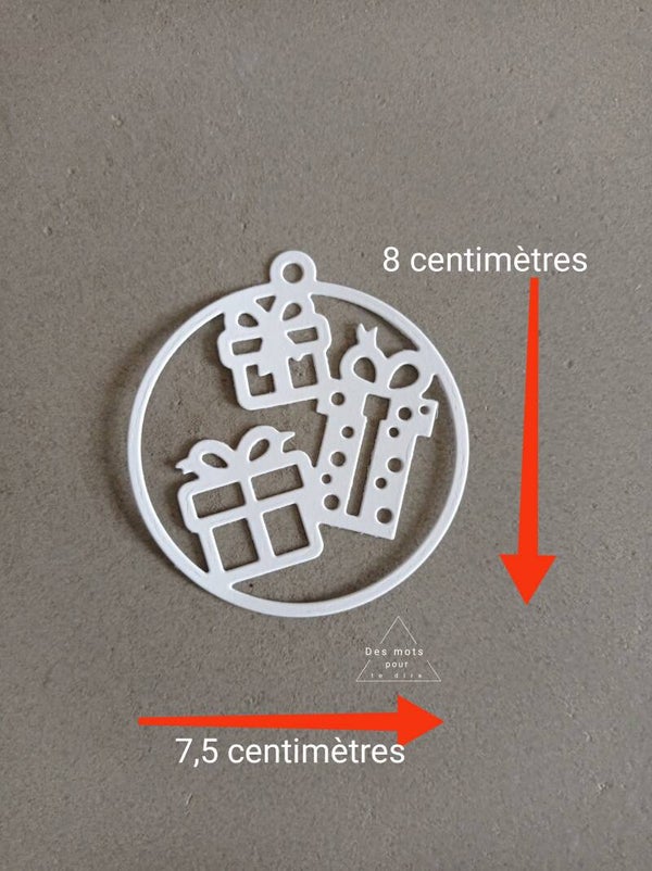 Découpe Boule de Noël avec motifs paquets cadeaux