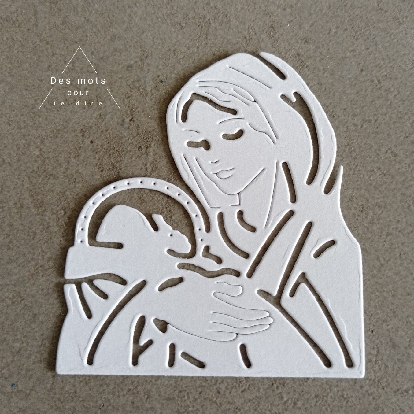 #découpe #scrapbooking #Marie #Vierge #enfantJésus #Jésus #livretdemesse #papeterie #faire-part #communion #baptême